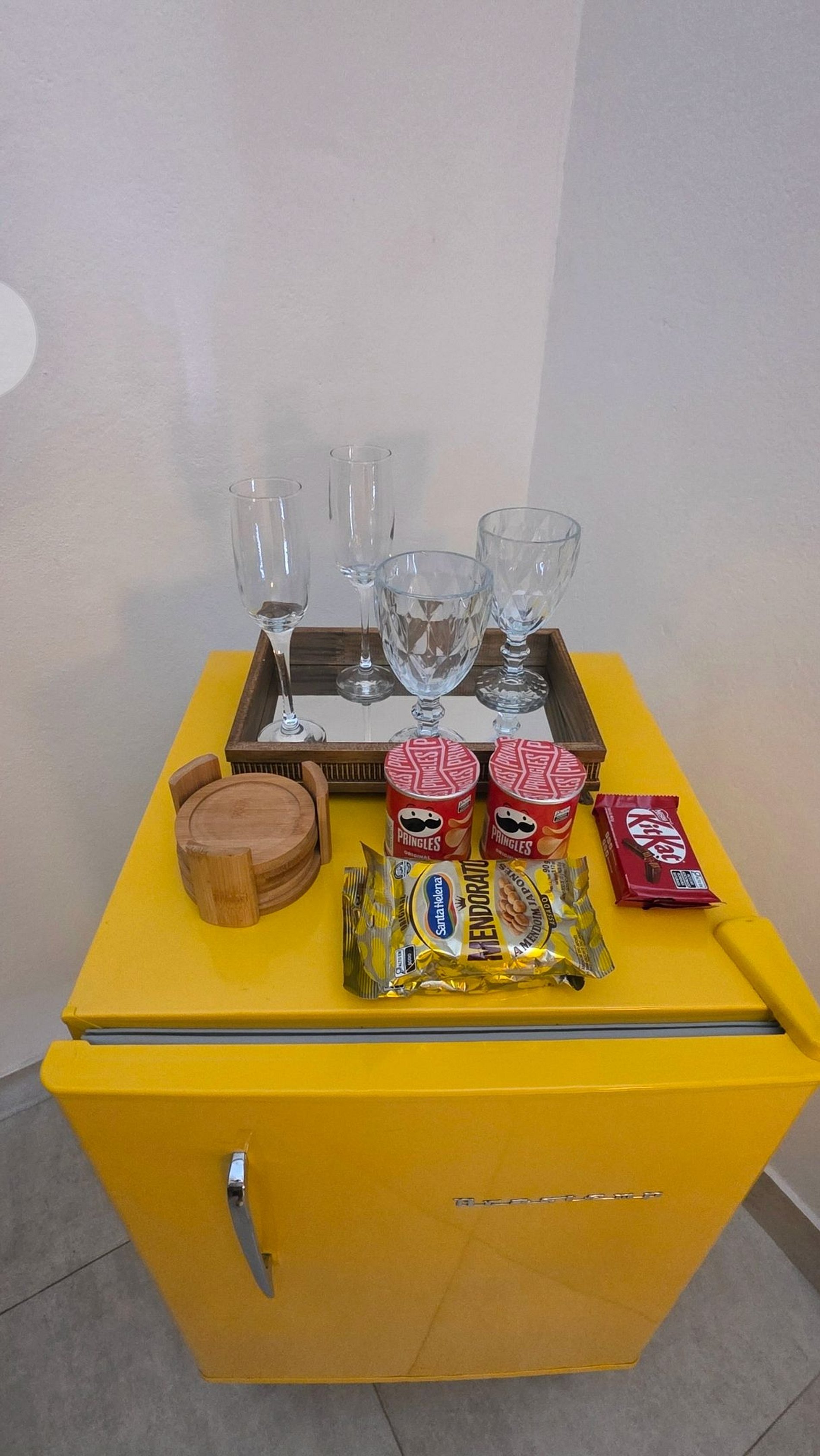 Oferecemos serviço de frigobar, reabastecido diariamente. Caso não deseje esse serviço, por favor, nos informe no momento da reserva para podermos retirá-lo do quarto.